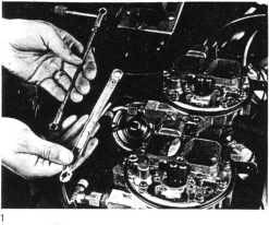 1. VENTING VALVES. (Pre-1972) Function Bowl venting gives a reliable hot start. Ventilation is achieved through the venting valve controlled by the carburetor linkage. When driving, bowl ventilation is in the air cleaner. At idle and when engine is stopped, ventilation is outside the air cleaner. This eliminates starting difficulties caused by fuel vapors entering intake manifold when engine is hot. The venting valves were eliminated on 1972 models in order to conform to federal requirements. Only internal venting is provided on these models. Problems 1. High fuel consumption can occur if the valve is stuck in the open position. 2. Hot starting problems can occur if the valve is stuck closed. |