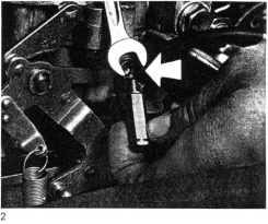 Adjustment 1. Remove carburetor connecting linkage. (See Fig. 1) 2. Remove vacuum throttle control. (See Fig. 2) 3. Open chokes. (See Fig 3) 4. On late carburetors the vent valve has a stop screw. This has been set at the factory and should not be changed. If it has been tampered with, readjust it to provide 2.5-2.8 mm. vent pin lift. (If changed other carburetor adjustments are affected.) (See Fig 4) 5. On early carburetors, without stop screw, this adjustment must be performed last. This adjustment is made by bending the arm at the notch to provide 2.5‹ 3.0 mm. vent pin lift. (See Fig. 5) |