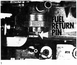 Adjustment (Pre-1972) 1. Slowly accelerate while watching return valve pin. At 2,000 RPM the pin should be fully lifted. (See Fig. 1) 2. Adjust at spring tension adjusting screw. (See Fig 2) |